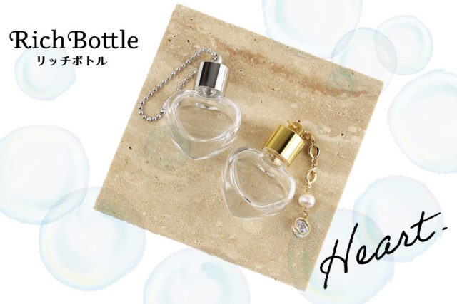 みんな大好き、かわいいハート型のミニボトルです。持ち歩きにもちょうどいい5mlサイズです。 上の写真