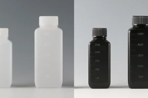 Jボトル 角型細口容器目盛付き 半透明ホワイト/遮光ブラック(本体:HDPE キャップ:PP)