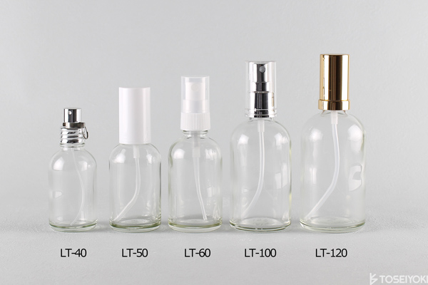 遮光性が必要な場合は茶色瓶をお選びください。用途に合わせてキャップ、スプレー、ポンプがお選びいただけます。