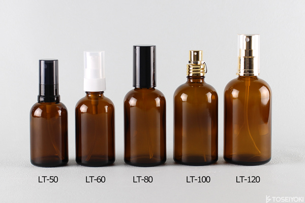 LTボトル茶・透明・フロスト〈キャップ・スプレー・ポンプ〉~化粧品容器・アロマ(ガラス容器)
