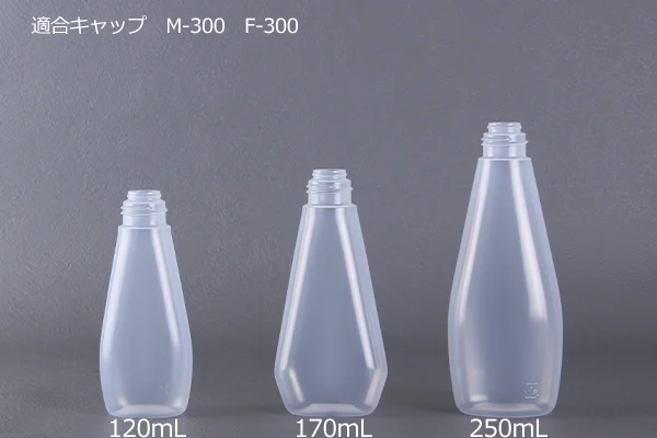 フルーツソースやピザソース、味噌、明太子などの食品向けの容器です。ポリエチレンを主材層とした多層のブロー成型容器で、酸素・水分・その他のガスを通しにくいバリア層のある容器で、内容物の酸化を防ぎます。また、スクイズ性にすぐれたソフトボトルなので中身を絞り出すことができます。キャップの穴は選べます。
