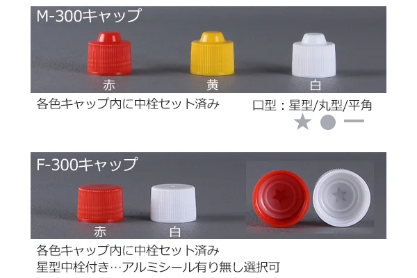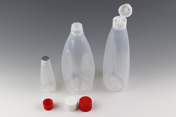 マヨネーズや調味料向けの容器です。ポリエチレンを主材層とした多層のブロー成型容器で、酸素・水分・その他のガスを通しにくいバリア層があり内容物の酸化を防ぎます。また、スクイズ性にすぐれたソフトボトルなので中身を絞り出すことができます。100mlはアルミシール付き星型穴中栓つきのスクリューキャップ、1Lは星型穴中栓つきのスクリューキャップのほかにワンタッチキャップもあります。